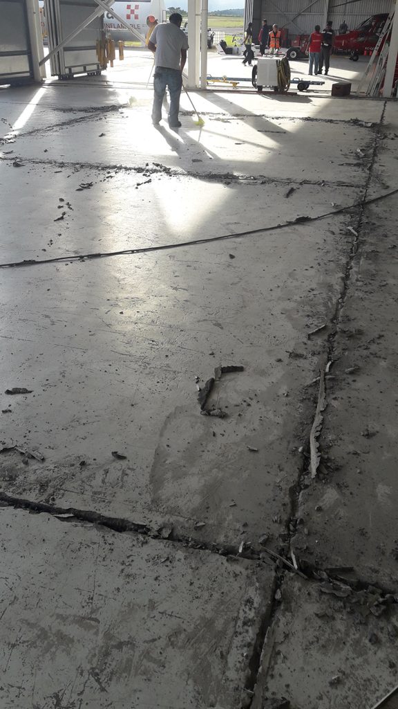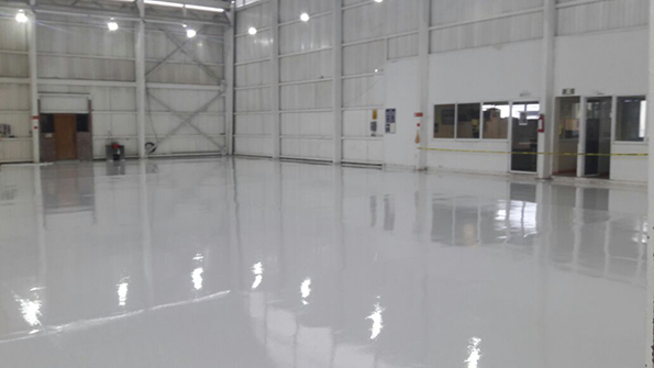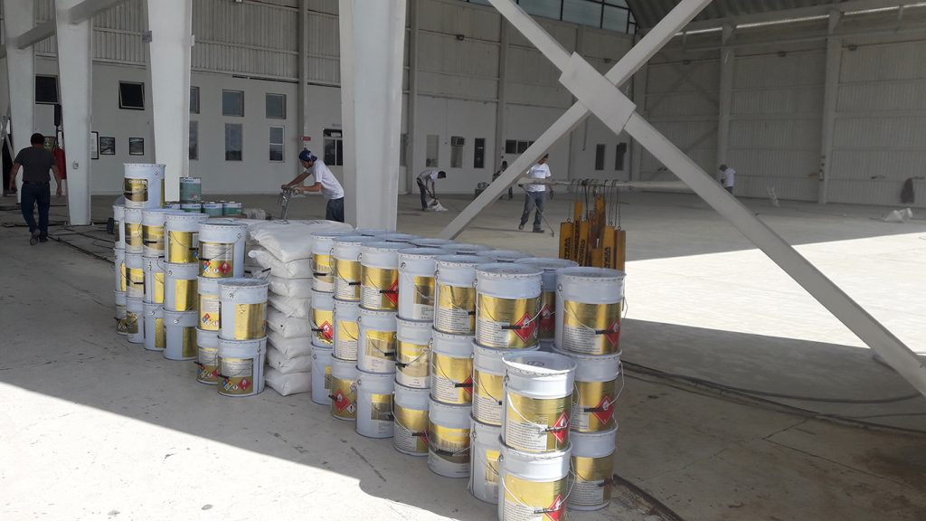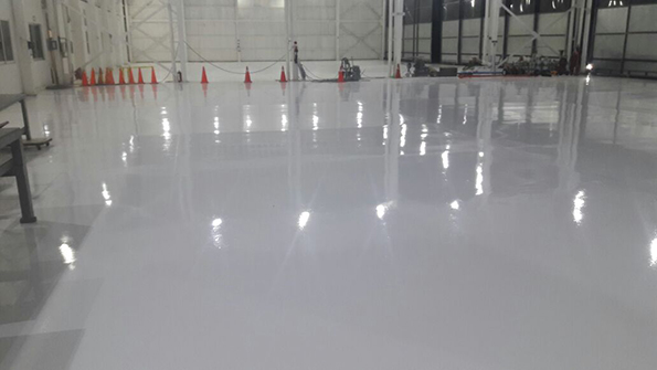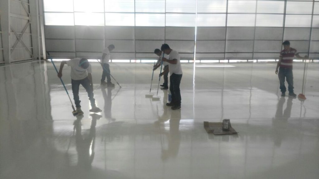Aplicación de sistema epoxico 100% sólidos en piso de hangar de gobierno del estado de Veracruz.
